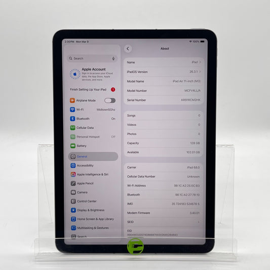 Unlocked Apple iPad Air 11" M3 128GB Space Gray MCFV4LL/A